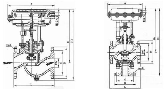 本系列產(chǎn)品有薄膜式、活塞式兩種。閥體結(jié)構(gòu)有單座、套筒、雙座(二位三通)三種,密封形式有填料密封和波紋管密封兩種,產(chǎn)品公稱壓力等級有PN10、16、40、64四種,公稱口徑范圍DN20~200mm。適用流體溫度由-60~450℃。泄漏量等級為IV級或Ⅵ級。流量特性為快開。