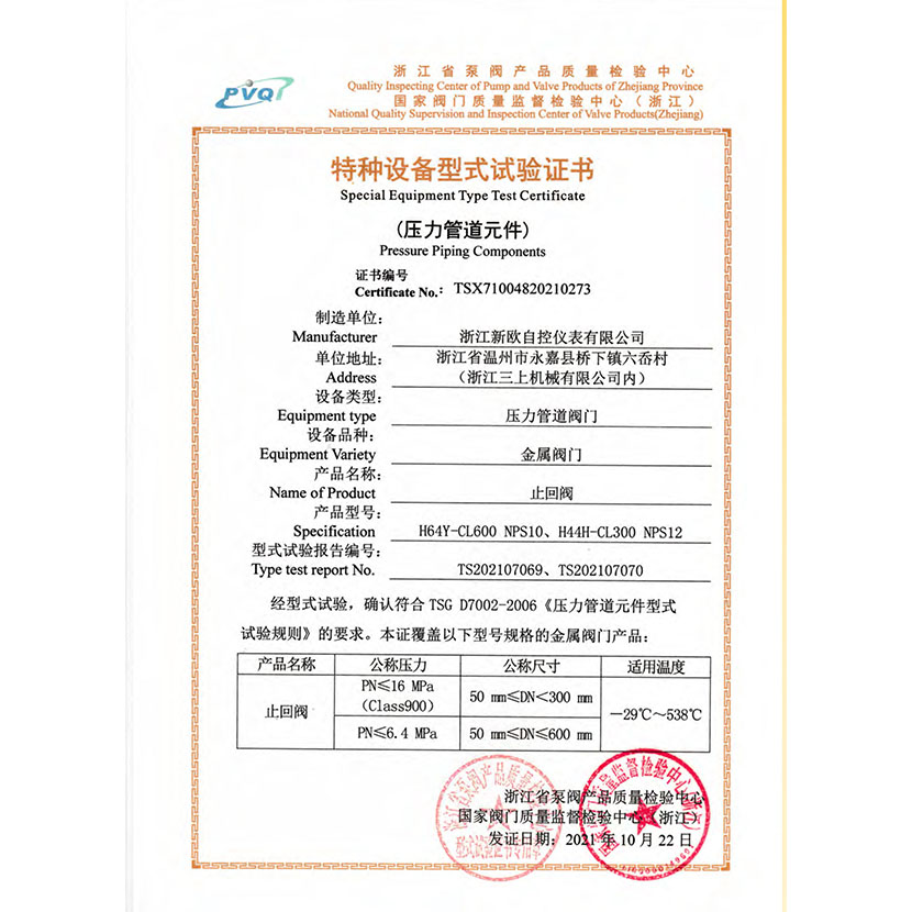 止回閥 型式試驗報告